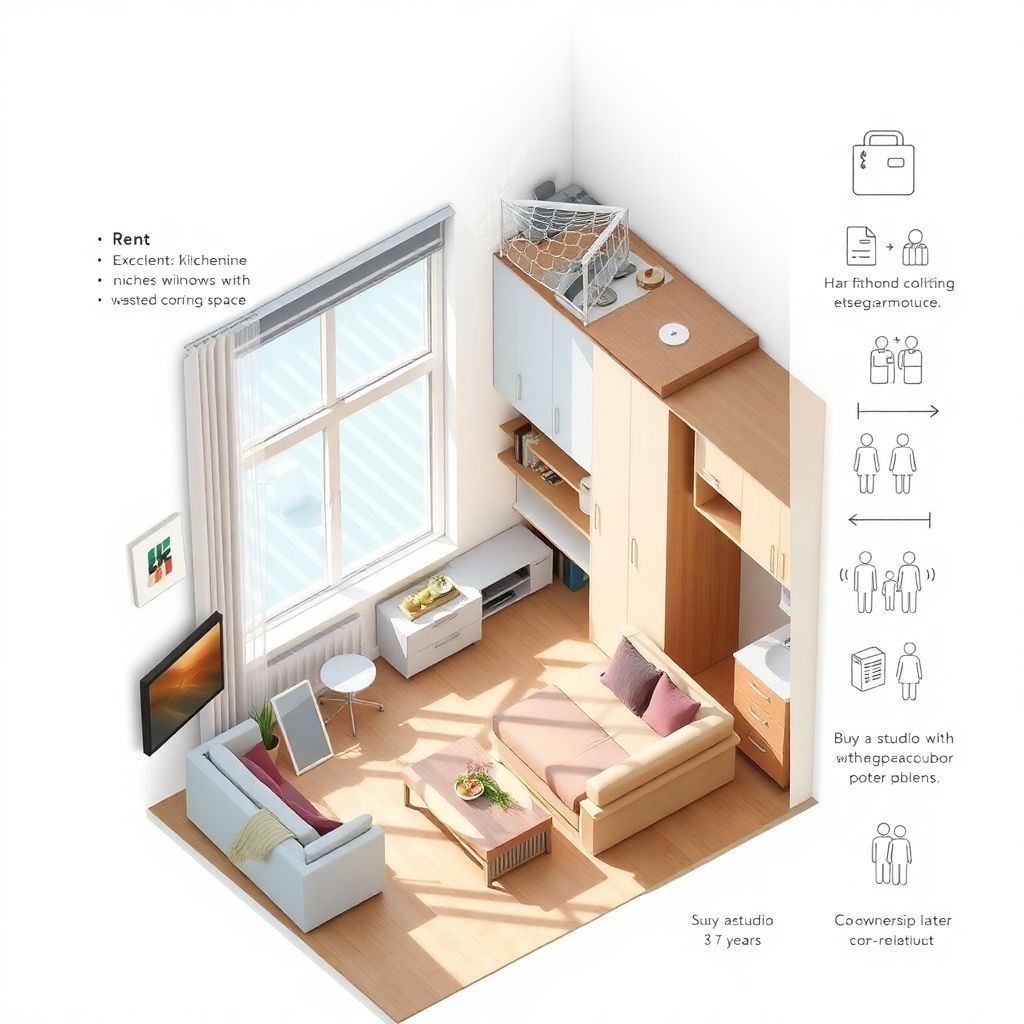Существует как минимум три практических подхода к решению «жилищного вопроса» в формате мини-жилья. Первый — продолжать аренду и откладывать покупку более просторной квартиры. Второй — купить студию в новостройке как стартовый актив, жить в ней 3–5 лет, параллельно наращивая капитал для апгрейда. Третий, менее распространённый, — ко‑листинг: совместное владение объектом с партнёром или родственником с последующим выкупом долей. Каждый вариант имеет собственную риск‑профиль: аренда даёт мобильность, но не создаёт капитала; покупка фиксирует вас в локации, но формирует актив; совместная собственность снижает входной порог, но добавляет юридические и психологические сложности в управлении имуществом.